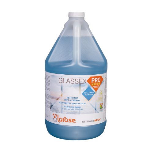 Concentrated glass cleaner, 4L. It leaves no streaks and makes windows, mirrors, chrome, stainless steel, countertops, tiles, porcelain, and plastic surfaces shine. It dissolves grease, soot, lipstick, pencil marks, and other dirt.